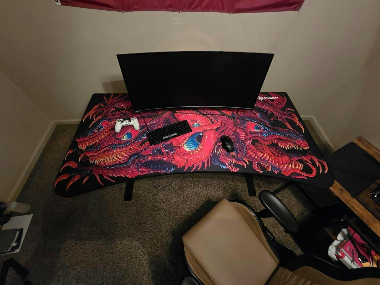 Arozzi Arena Ultrawide Curved Gaming Desk – Premium Gaming Desk with Full-Surface Mouse Pad